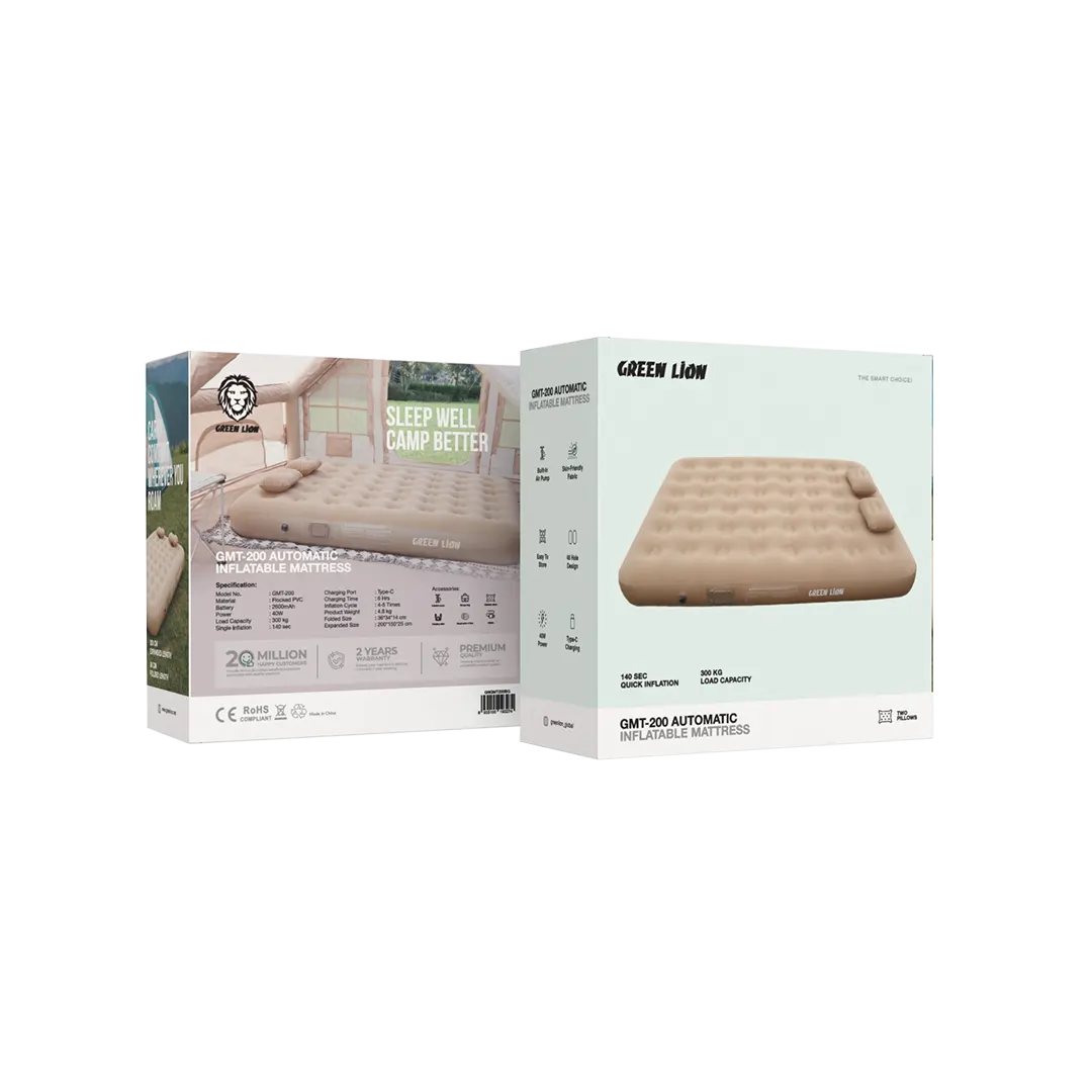 تجربه خوابی رویایی در دل طبیعت با تشک بادی اتوماتیک گرین لاین GMT-200 از شارسن. این محصول با طراحی هوشمند و پمپ اتوماتیک داخلی، آماده استفاده در کمتر از ۳ دقیقه است.